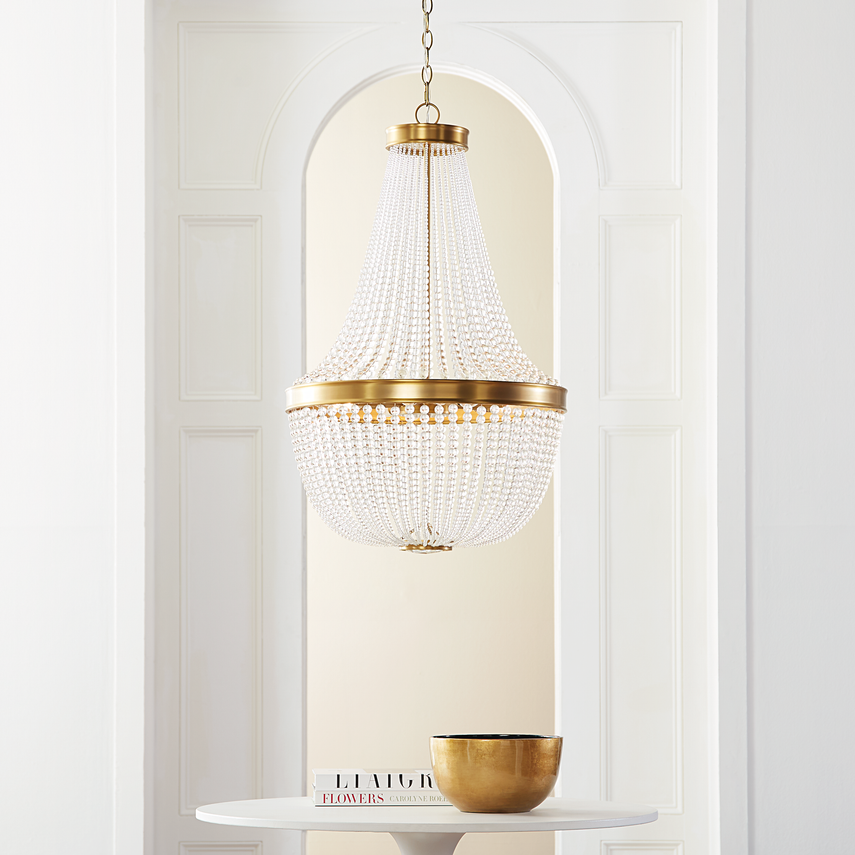 Summerhill Kronleuchter, mittelgroß, aus brüniertem Messing, mit klarem Glas