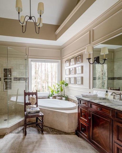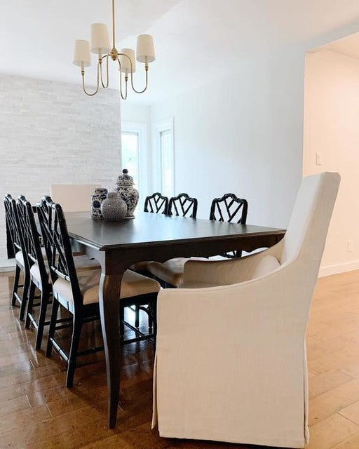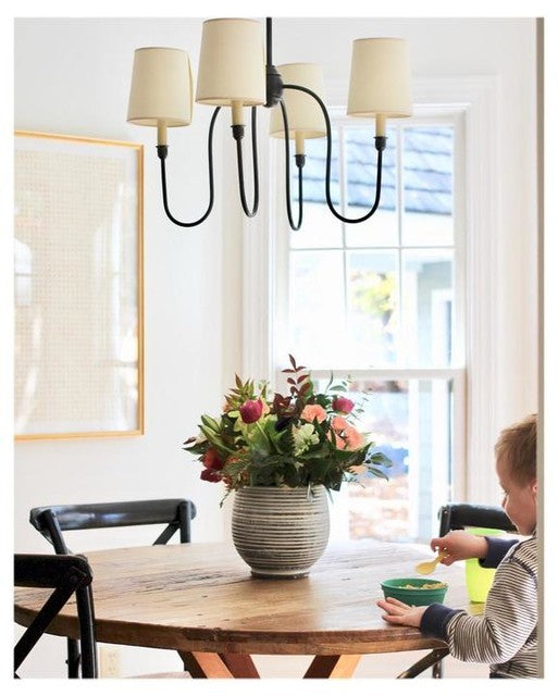 Kleiner Kronleuchter Vendome aus Bronze mit Leinenschirmen