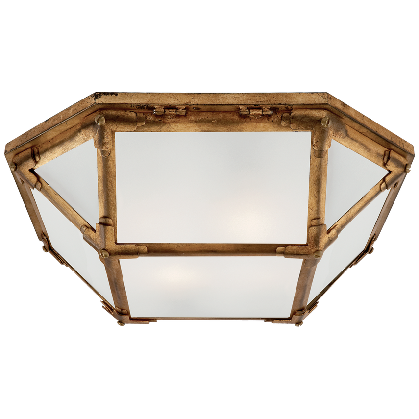 Morris Deckenlampe aus vergoldetem Eisen mit Milchglas