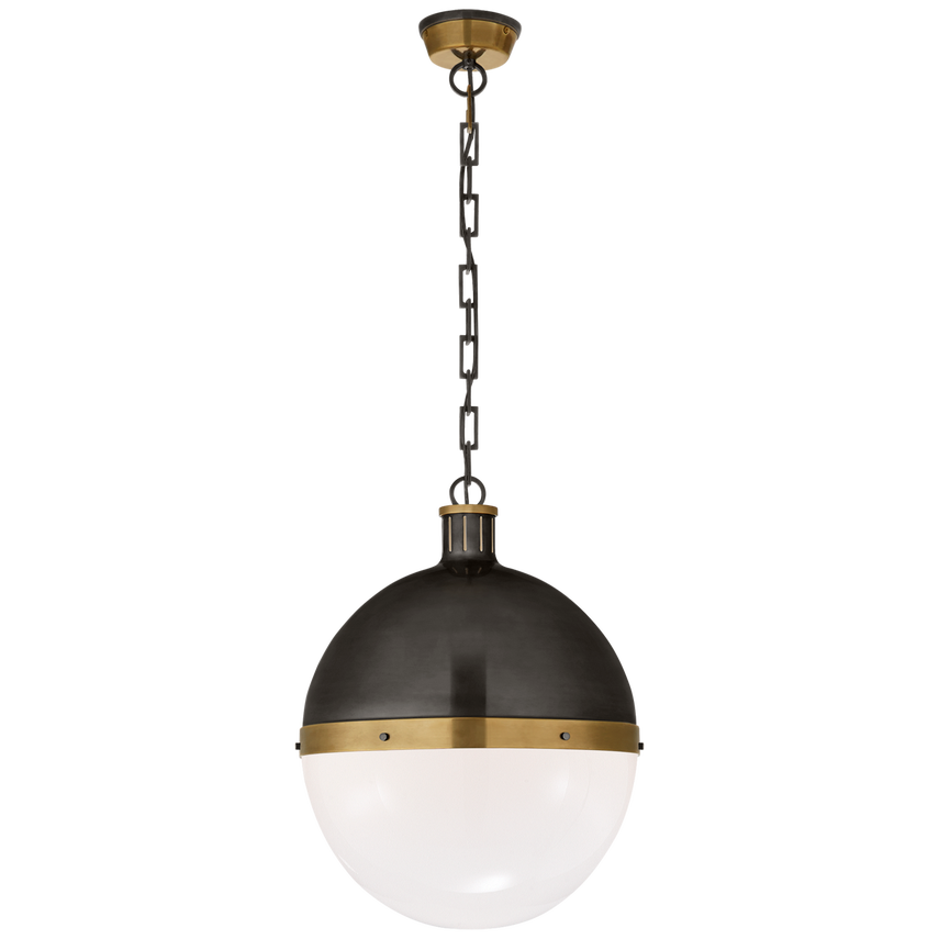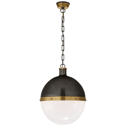 Hicks Pendelleuchte, extra groß, Bronze und handpoliertes antikes Messing mit weißem Glas