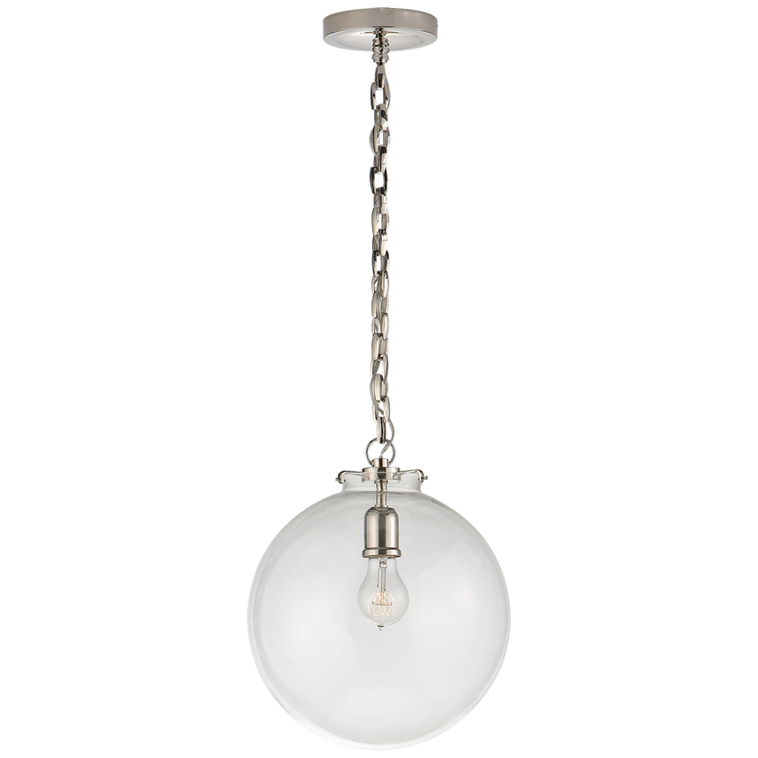 Katie Globe Pendelleuchte aus poliertem Nickel mit klarem Glas