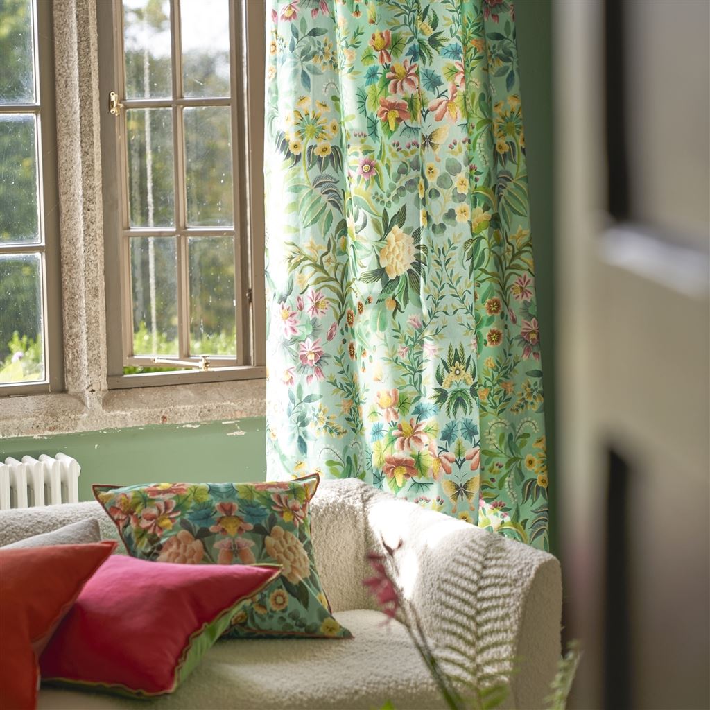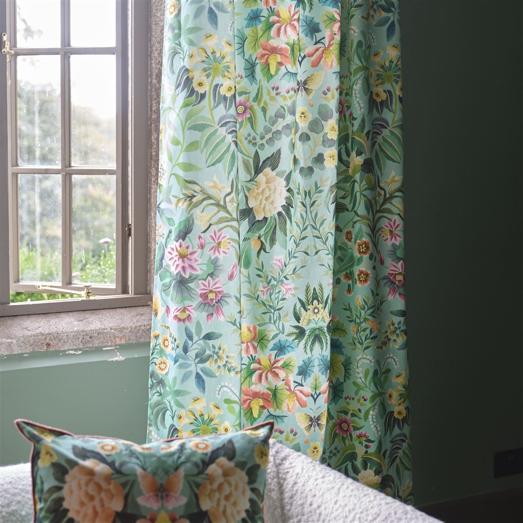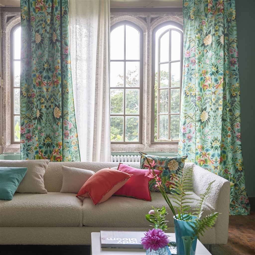 Exquisit bemalte Blumen, Blattwerk und Schmetterlinge sind in einer durchdachten, kaleidoskopischen Form angeordnet, um einen modernen floralen Damastdruck zu schaffen. Digital gedruckt auf robuster, waschbarer reiner Baumwolle eignet es sich für Vorhänge, Kissen und Jalousien sowie Polstermöbel. Die Farbpalette, die von sanften Neutraltönen bis hin zu helleren Tönen reicht, passt zu jedem Einrichtungsstil. Erhältlich in fünf atemberaubenden Farben mit zwei zusätzlichen Farben auf luxuriösem Samt. Passende Tapeten sind ebenfalls erhältlich. (Stoff – Breite: 139 cm, horizontale Verbindung: 139 cm, vertikale Verbindung: 88 cm, 146,00 pro Meter)