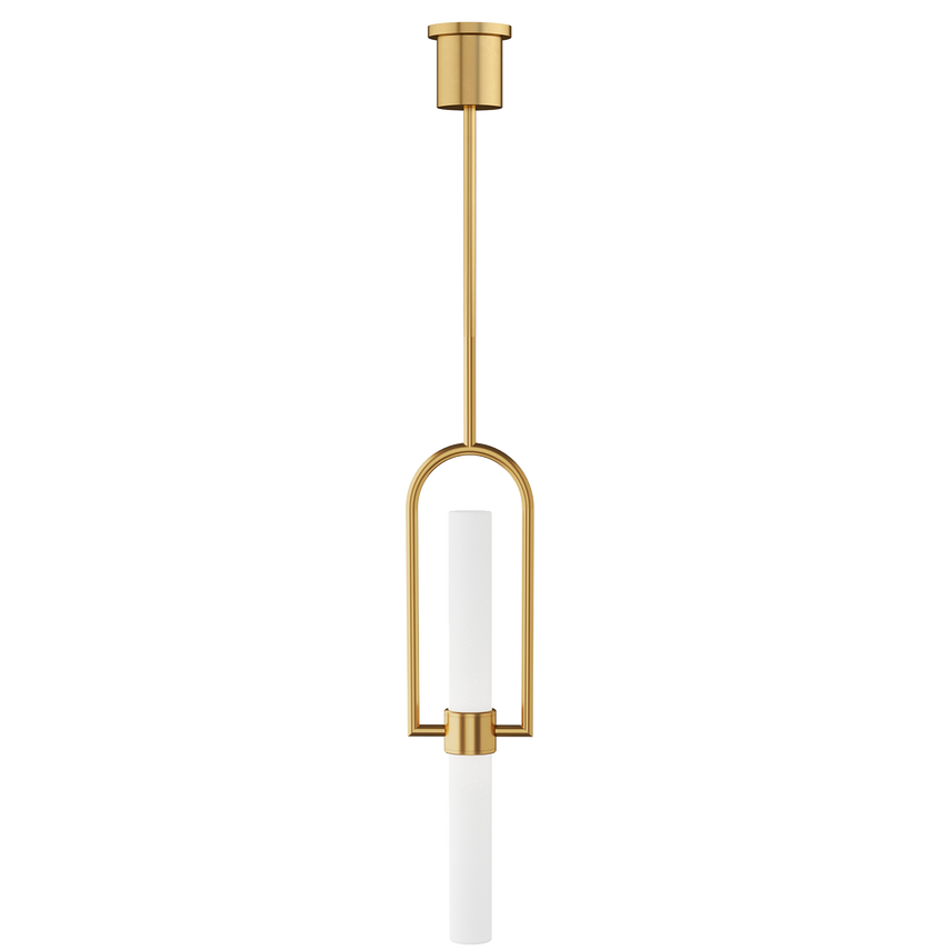 Die Calumn-Pendelleuchte von Sean Lavin verfügt über eine längliche Pendelleuchte, die für einen optischen Reiz von einem Metallbogen umrahmt wird, der in der Mitte des Schirms hängt. Der Calumn-Anhänger hat eine Höhe von 26 Zoll und eine Breite von 7 Zoll und eignet sich daher ideal zum Aufhängen einzeln oder in mehreren. Vervollständigen Sie den Look mit der gesamten Calumn-Kollektion, einschließlich der Tension-Line-Pendelleuchte und dem 6-flammigen Kronleuchter.