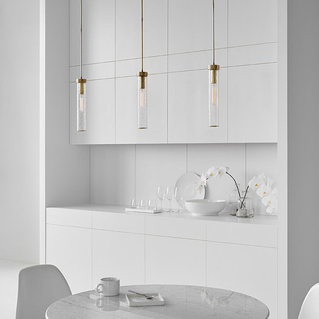 Diese schlanke Pendelleuchte verfügt über unser charakteristisches Crackle-Glas und beherbergt eine einzelne Glühbirne mit Kandelabersockel. Der Schirm aus Craquelé-Glas ist mit Messing umrahmt und hängt an einem Baldachin aus Messing. Die Mischung aus klaren und rohen Oberflächen verleiht dieser Pendelleuchte einen deutlich modernen Touch. Erhältlich in antik brüniertem Messing, Bronze und poliertem Nickel mit rissigem Glas.