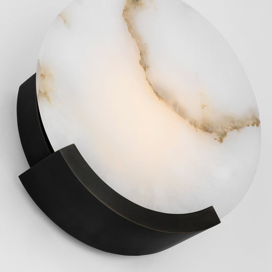 Esculpa 14" Rounded Alabaster and Antique-Burnished Brass Wall Lamp