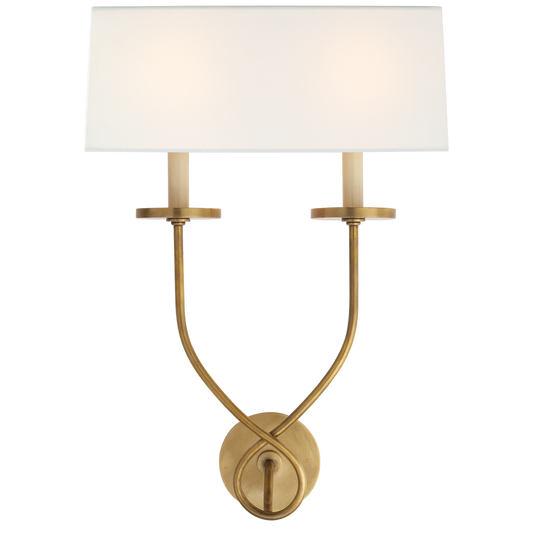 Symmetric Twist Double Wall Lamp Antique-Burnished Brass with Linen Shade