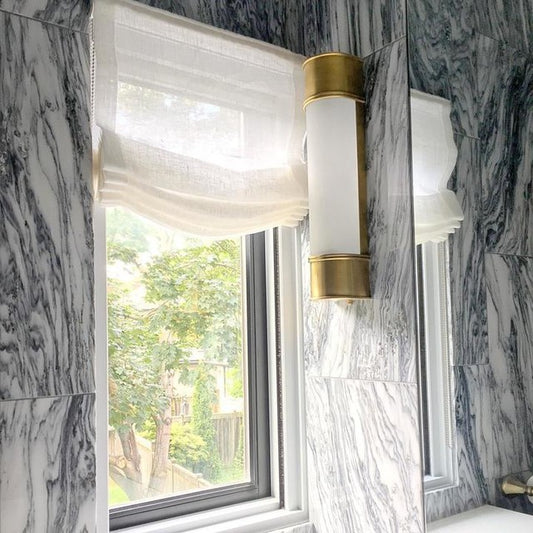 Wall Lamp Square Tube Double Hand-Rubbed Antique Brass with Linen Shades