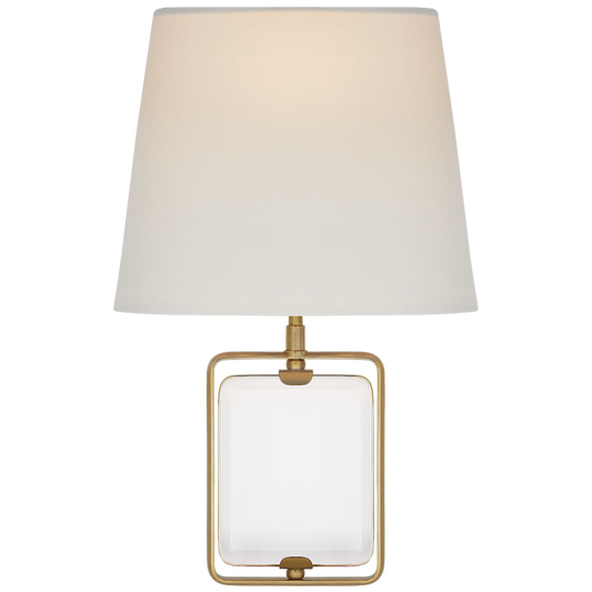 Henri Framed Jewel Crystal and Hand-Rubbed Antique Brass Wall Lamp with Linen Shade