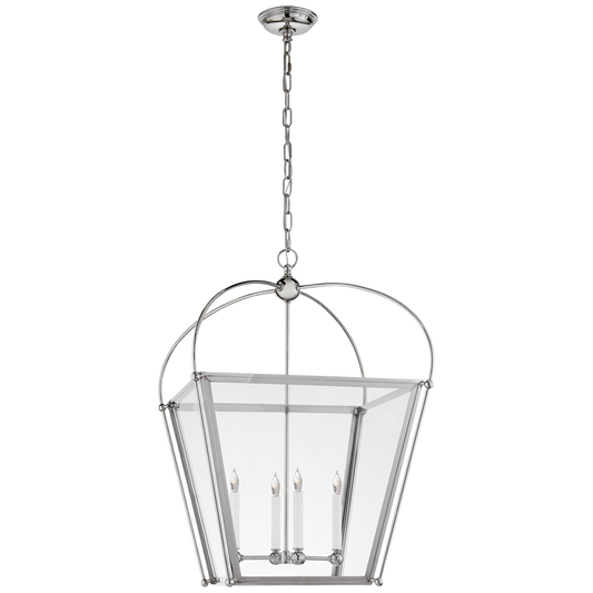 Riverside Medium Square Lantern Polished Nickel with Clear Glass