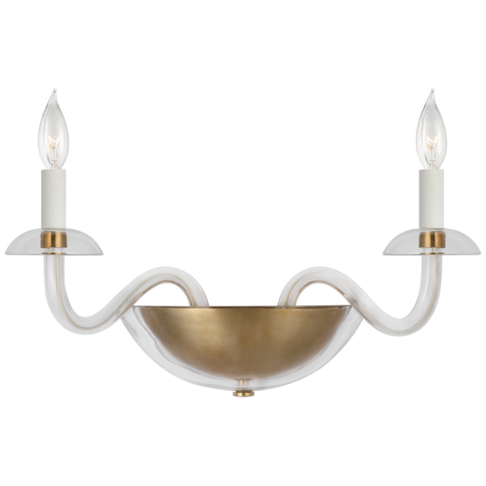 Brigitte Small Double Clear Glass and Hand-Rubbed Antique Brass Wall Lamp