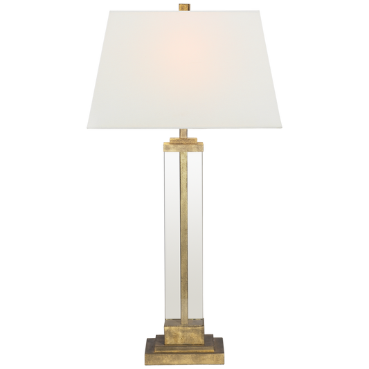 Wright Table Lamp Gilded Iron and Glass with Linen Shade