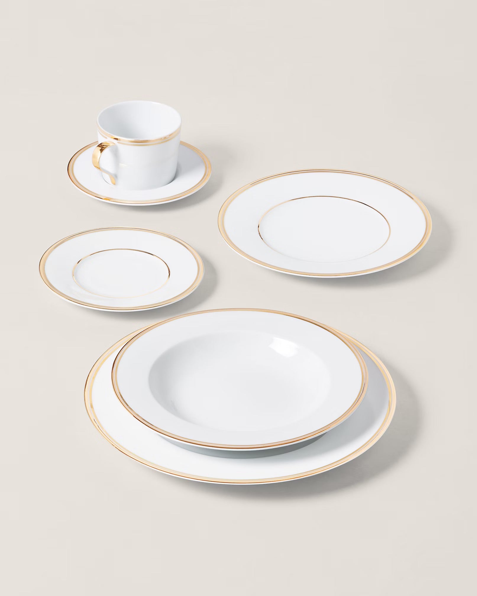 Inspired by the safari looks of the Ralph Lauren collection, this zebra porcelain plate will bring a touch of originality to your table. Hand painted bronze colored edge for a glossy finish.