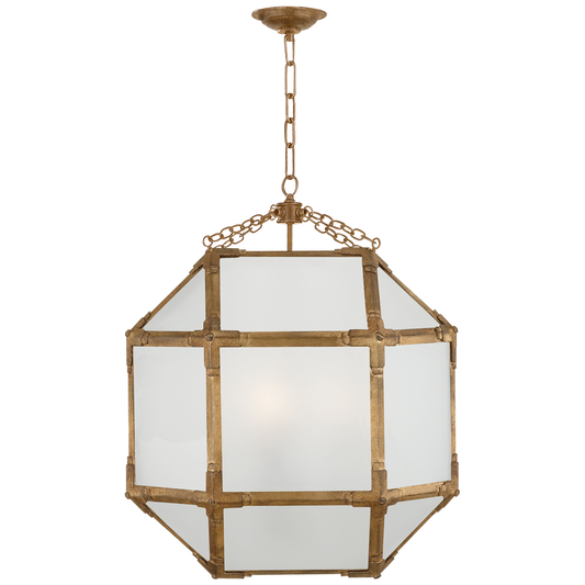 Morris Large Gilded Iron with Frosted Glass Lantern