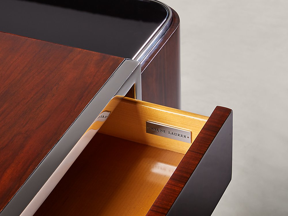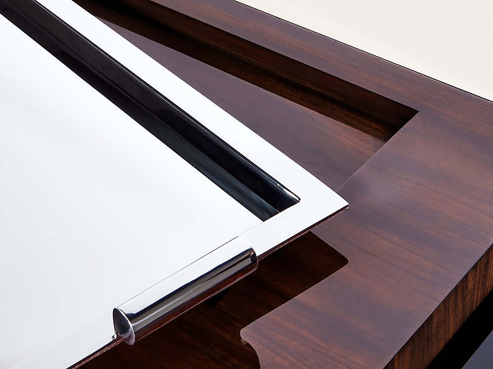 - Beautifully crafted from kiln-dried hardwood and hand-selected Santos Rosewood veneers. Removable rim and tray in polished stainless steel.