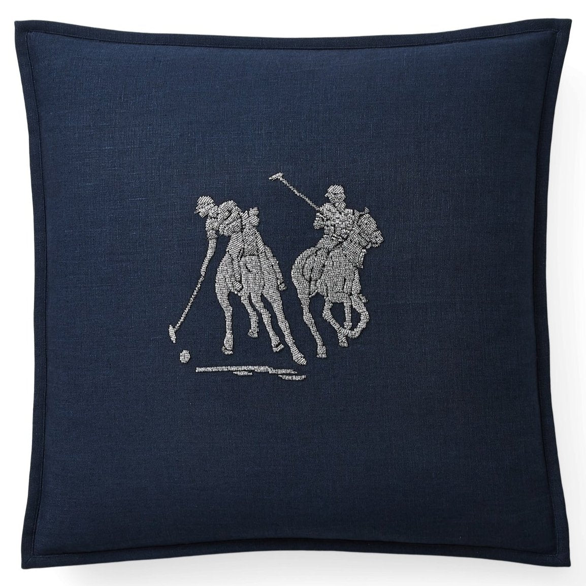 An emblem of Ralph Lauren's rich equestrian tradition, the Griffith cushion is crafted from supple linen embroidered with refined tonal beads depicting a lively polo match.