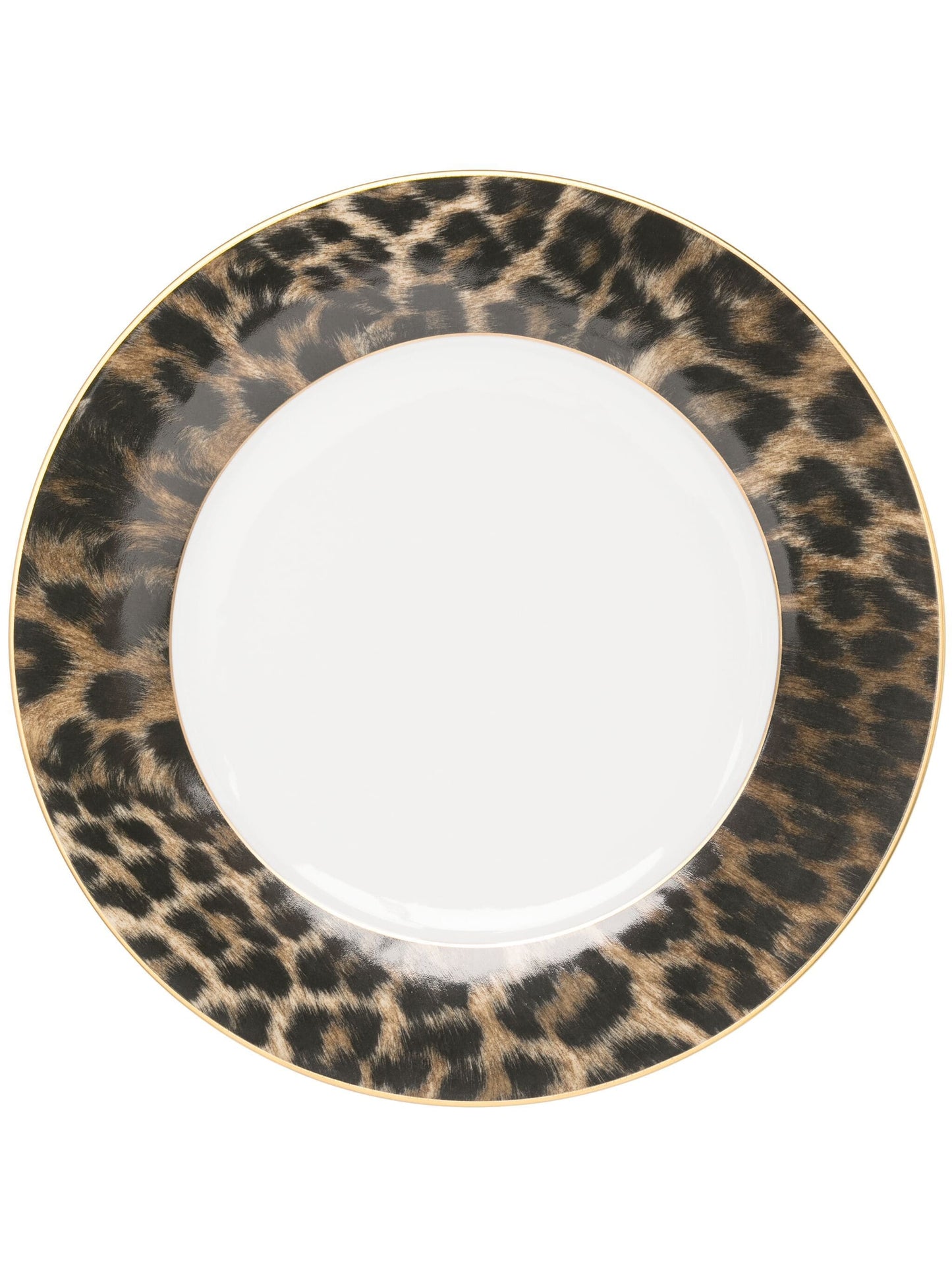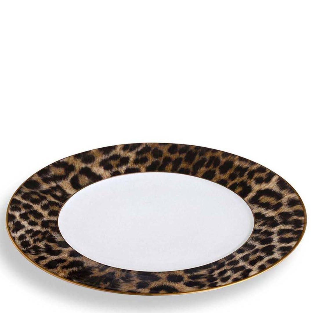 Our large Hutchinson plate is crafted from fine leopard-patterned porcelain and edged with gold trim.