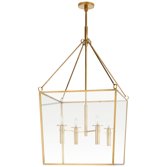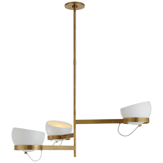 Chandelier Lightwell Grande Triple Soft Brass with White Shades