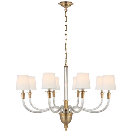 Vivian Large One-Tier Hand-Rubbed Antique Brass Chandelier with Linen Shades