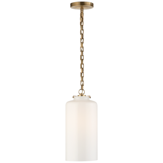 Katie Cylinder Pendant Hand-Rubbed Antique Brass with White Glass
