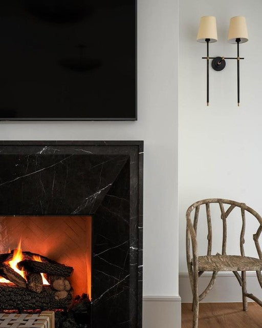 Bryant Bronze Wall Lamp with Linen Shade with Black Tape