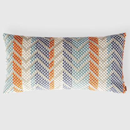 - Decorative cushion in pure cotton printed with bright multi-colored zigzags.