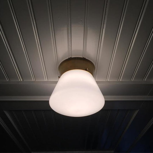 Plafonnier Clark Hand-Rubbed Antique Brass with White Glass