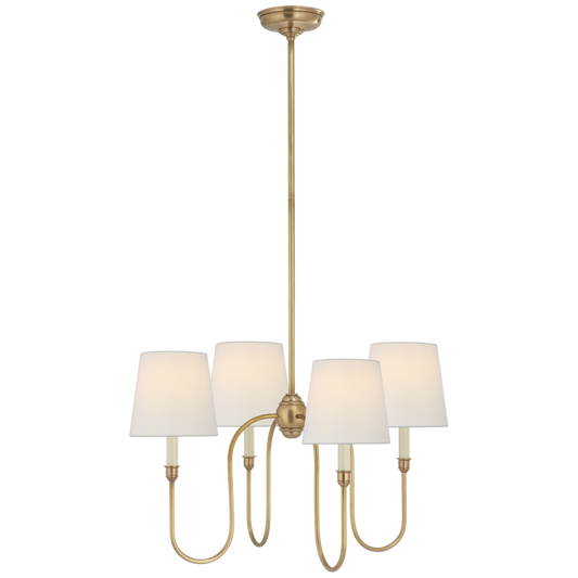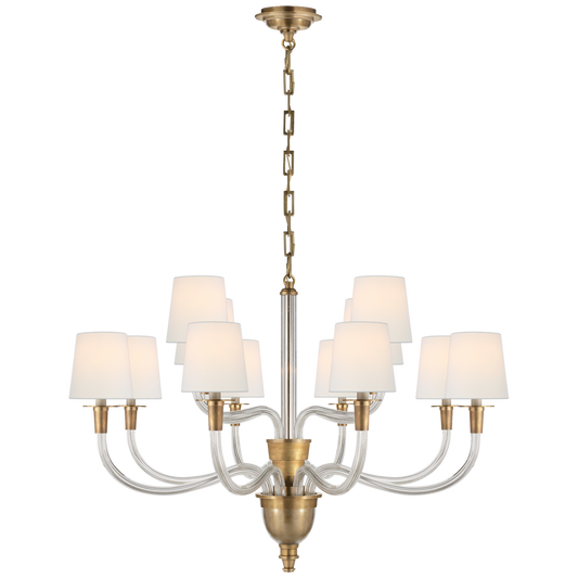 Lustre Vivian Large One-Tier Hand-Rubbed Antique Brass with Linen Shades