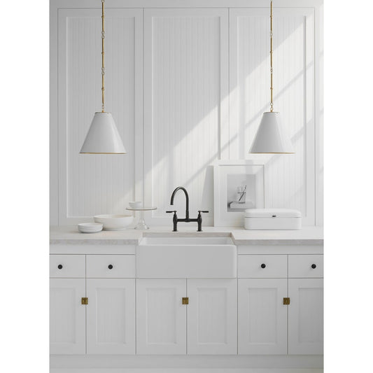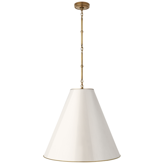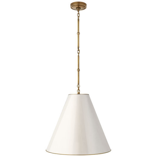 Suspension Goodman Large Hanging Hand-Rubbed Antique Brass with Antique White Shade