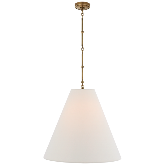 Suspension Goodman Large Hanging Hand-Rubbed Antique Brass with Linen Shade