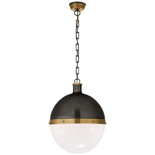 Suspension Hicks Extra Large Bronze and Hand-Rubbed Antique Brass with White Glass