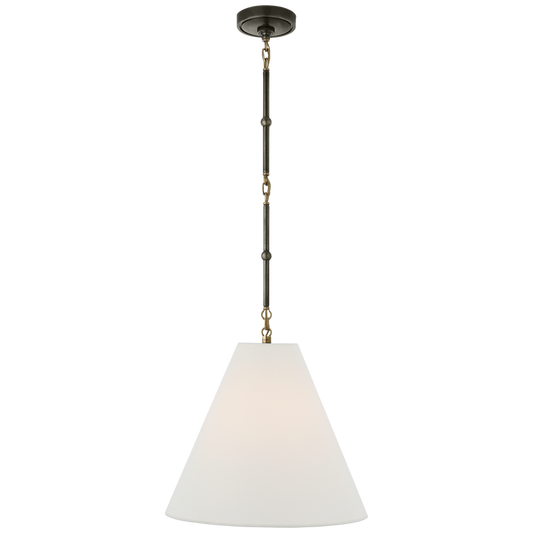 Suspension Goodman Small Bronze and Hand-Rubbed Antique Brass with Linen Shade