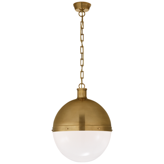 Suspension Hicks Extra Large Hand-Rubbed Antique Brass with White Glass