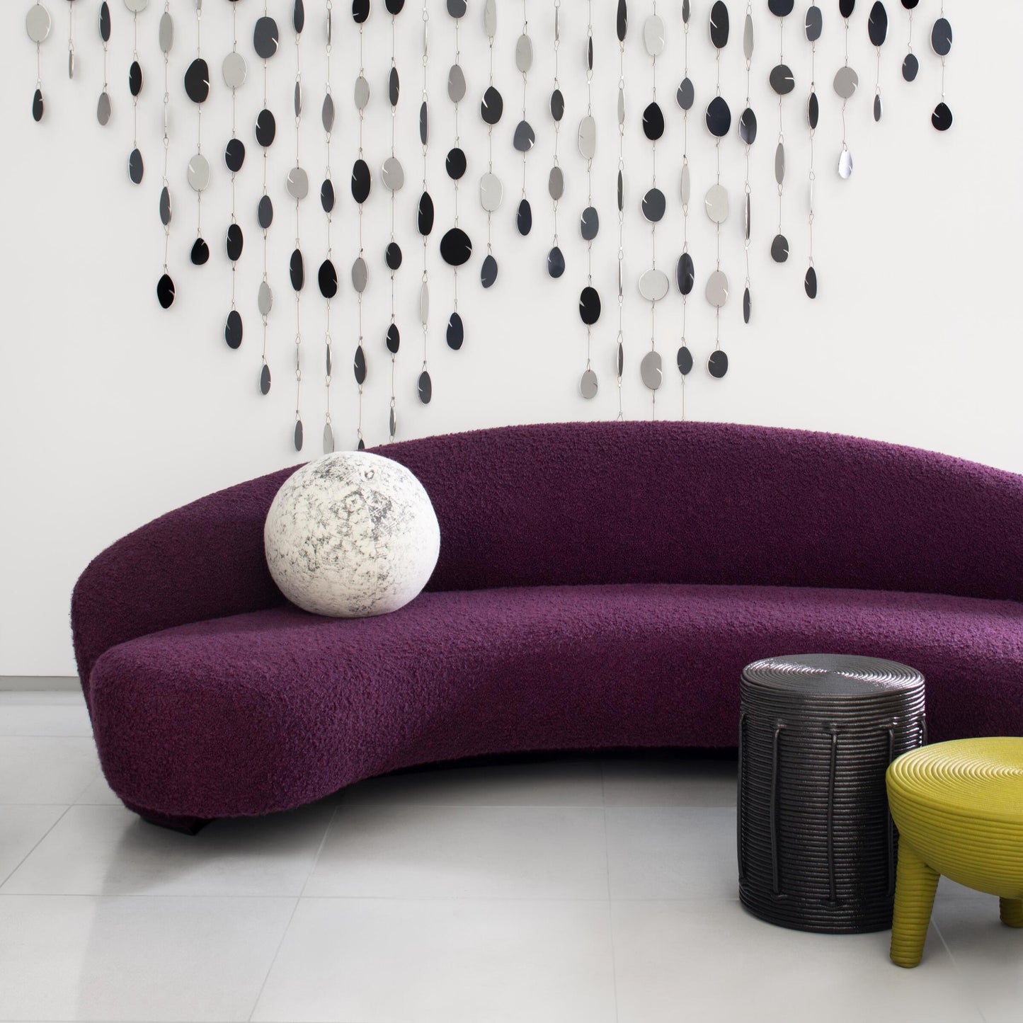 Le Big Picture Sofa est un design contemporain qui repousse les limites des détails iconiques de Kagan. À première vue, la forme en double croissant crée l'illusion qu'elle est imbriquée. En réalité, le siège est en porte-à-faux par rapport au dossier, un véritable exploit d'ingénierie, équilibré par le dossier extérieur en forme de croissant.
