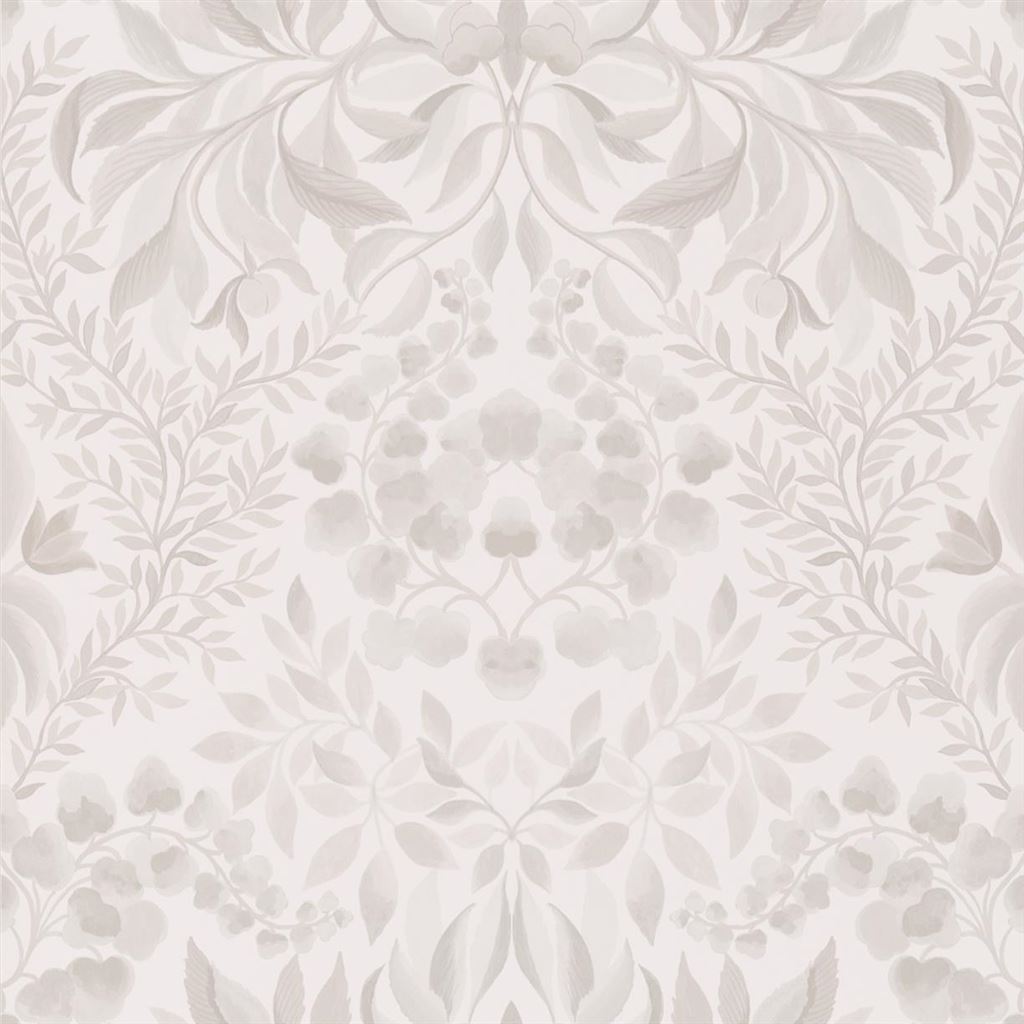 Des vignes et des feuillages traînants sont disposés dans une forme kaléidoscopique en miroir pour créer un papier peint damassé contemporain. Imprimé en héliogravure sur un support intissé pour faciliter la pose. Disponible en six coloris. Tissu coordonné également disponible. (Wallpaper - Largeur: 52cm, Raccord Vertical: 52cm, 112.00 par rouleau)