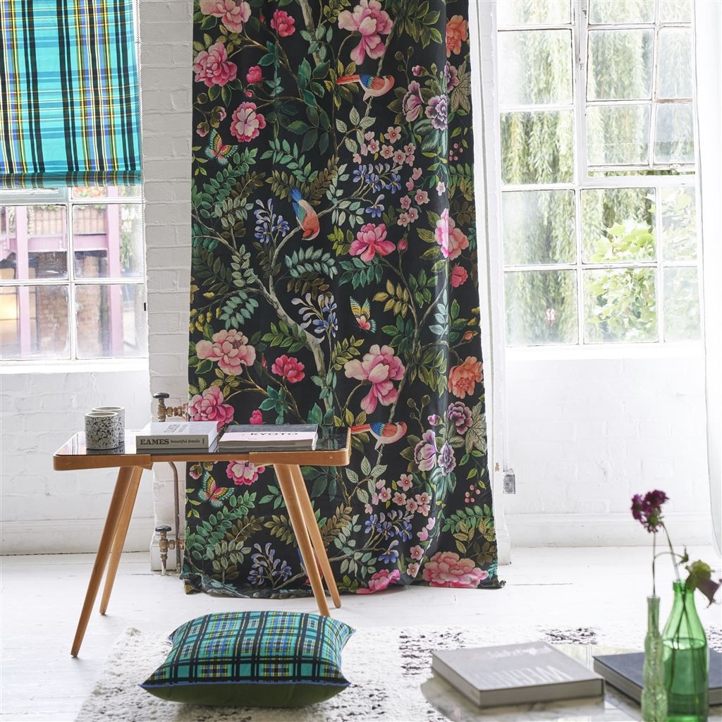 Des peintures détaillées et complexes de fleurs et d'oiseaux évoquent la magie de la porcelaine fine dans ce magnifique velours riche en coton imprimé numériquement. S'inspirant des célèbres motifs de la porcelaine de Sèvres, ce velours floral est disponible en deux coloris spectaculaires - indigo et noir. Il convient aux rideaux d'ameublement et à d'autres applications intérieures. Egalement disponible en lin chiné et en papier peint coordonné. (Fabric - Largeur: 133cm, Raccord Horizontal: 133cm, Raccord Vertical: 123cm230.00 par mètre)