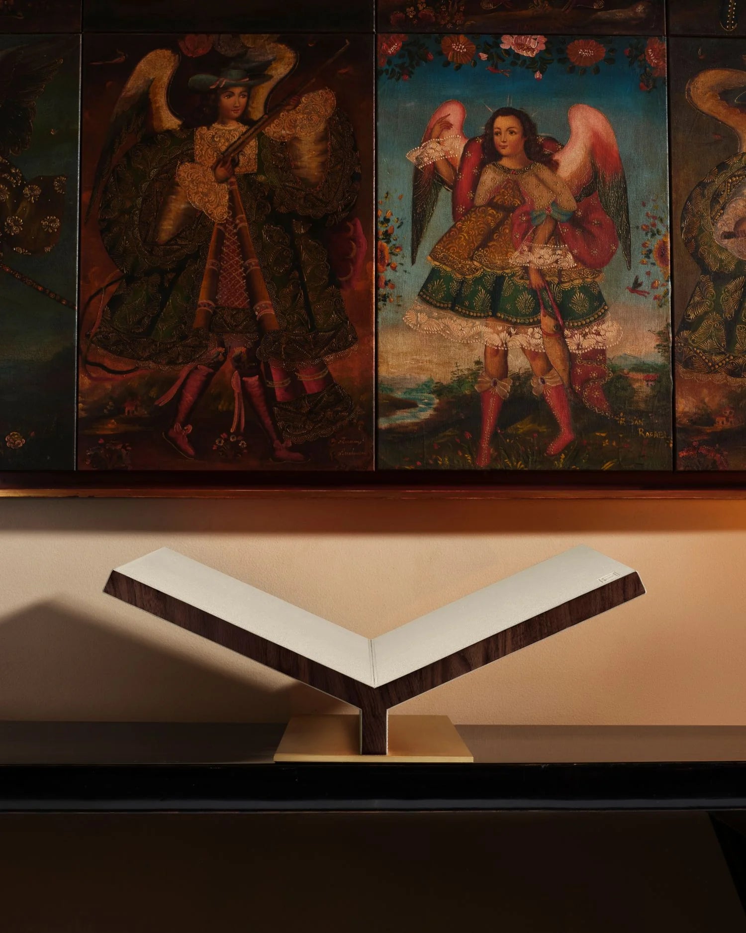 Le Collector Bookstand est une pièce remarquable qui attire tous les regards. Sa silhouette majestueuse, conçue en bois de noyer et habillée de cuir grainé, repose sur un support en laiton brossé, transformant l’objet en véritable sculpture. Proposé en tailles Ultimate et Classic, et décliné dans une palette raffinée de teintes de cuir, le Collector Bookstandsublime autant les proportions que l’esthétique de tout ouvrage qu’il met en valeur.