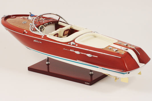 Commandez en Ligne la Collection Officielle des Maquettes RIVA: Découvrez la collection exclusive de maquettes officielles Riva, disponibles en ligne et dans notre showroom à Paris. Ces maquettes haut de gamme, allant de 25 cm à 1,2m de long, sont les seules autorisées par le célèbre chantier naval italien Riva. Chaque modèle est livré avec un certificat d'authenticité, garantissant leur qualité et leur exclusivité.