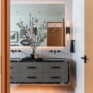 Applique Rousseau Medium Vanity cristal gravé - Bronze