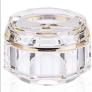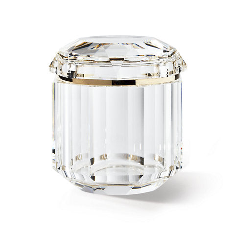 Inspirée des bijoux Ralph Lauren, cette boîte décorative en cristal à facettes ornée d’un bord en laiton conférera une touche raffinée à votre bureau ou coiffeuse.