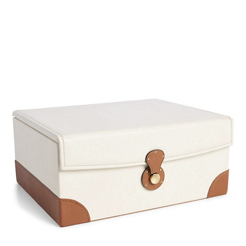 Des artisans ont cousu à la main du cuir lisse et du cuir chagrin pour confectionner cette élégante boîte décorative, qui donnera une touche de glamour soigné à votre bureau.