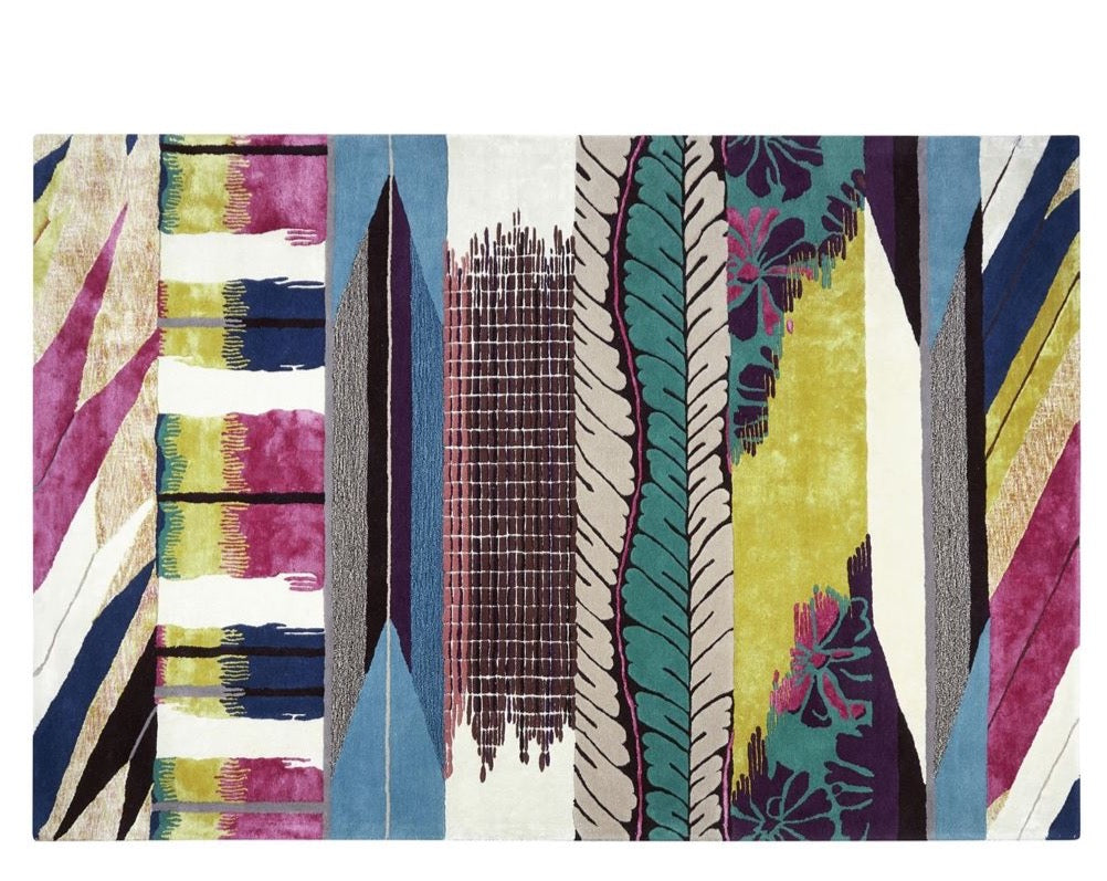 Ce tapis de sol signé Christian Lacroix aux couleurs vives et motifs ikat sont ornés d'un mélange de laine et de fils de viscose dans ce fabuleux tapis graphique. Des hauteurs de poils sont variables pour un effet de sculpture complexe.