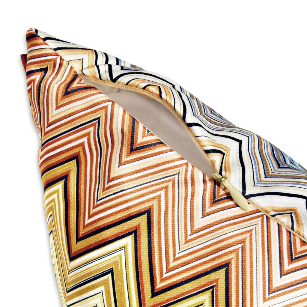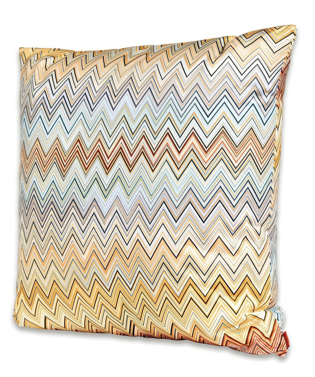 À quoi ressemble une icône ? Il suffit de regarder le motif du coussin Jarris de 60x60 cm pour s’en faire une idée et retrouver, intact, le zigzag emblématique de Missoni dans un accessoire aussi polyvalent qu’inimitable. Fabriqué en pur coton, ce textile d’intérieur est personnalisé avec l’étiquette du logo.