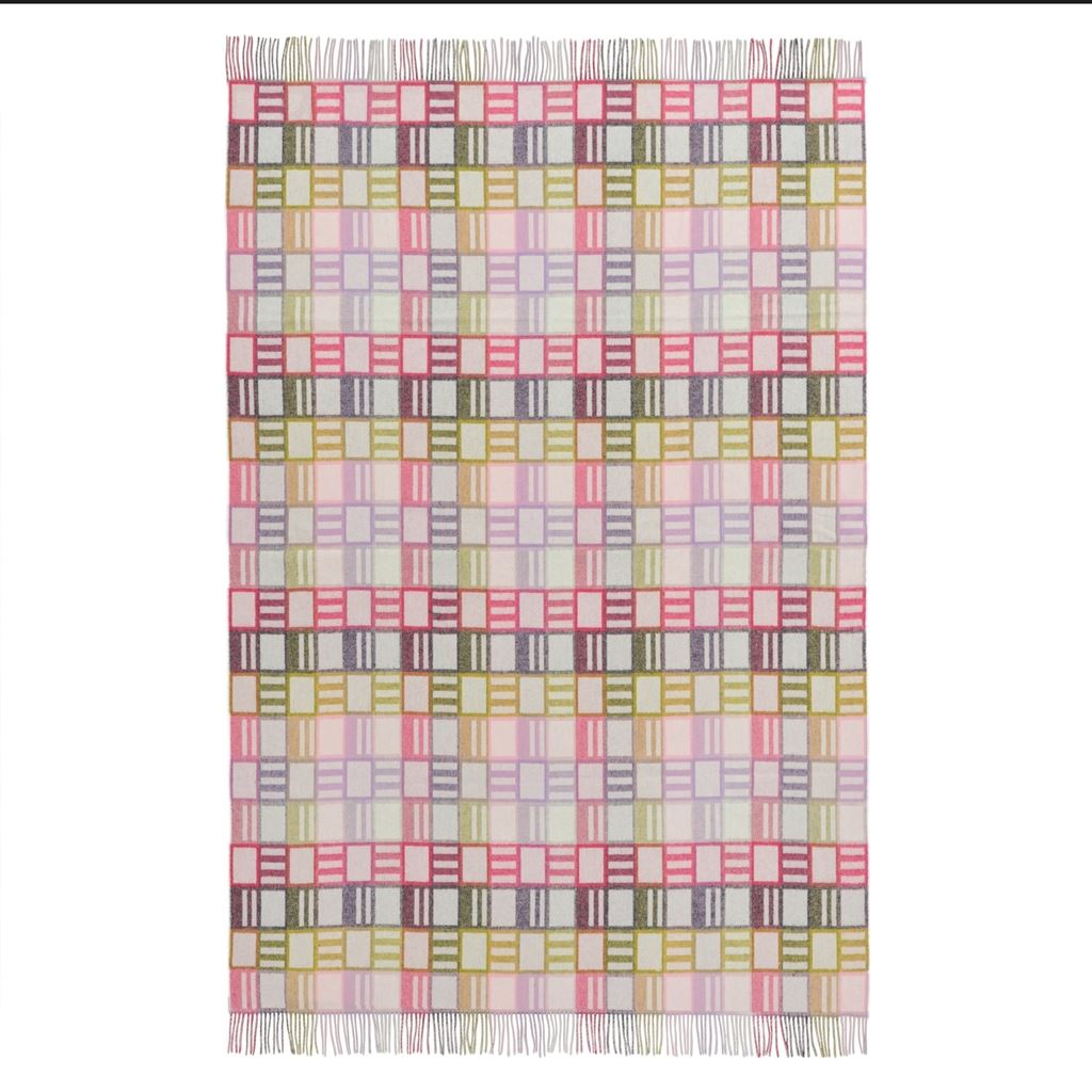 Tissé dans le Yorkshire dans une filature de laine traditionnelle, ce jeté graphique élégant présente un élégant motif de blocs dans des tons de pivoine et de mousse. Créé avec 100 % de pure laine mérinos et fini avec un bord frangé.