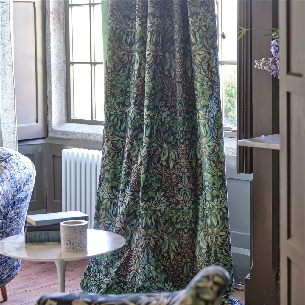 Les vignes et le feuillage sont disposés de manière kaléidoscopique pour créer un damas contemporain dans ce magnifique et élégant motif de feuilles. Imprimé numériquement sur un luxueux velours de coton dans une couleur riche et intense. Pour des rideaux, des coussins et des stores magnifiques, ainsi que pour des tissus d'ameublement originaux. Deux autres coloris sont également disponibles en pur coton. Papier peint assorti également disponible. (Fabric - Largeur: 134cm, Raccord Horizontal: 44cm, Raccord Vertical: 43.5cm242.00 par mètre)