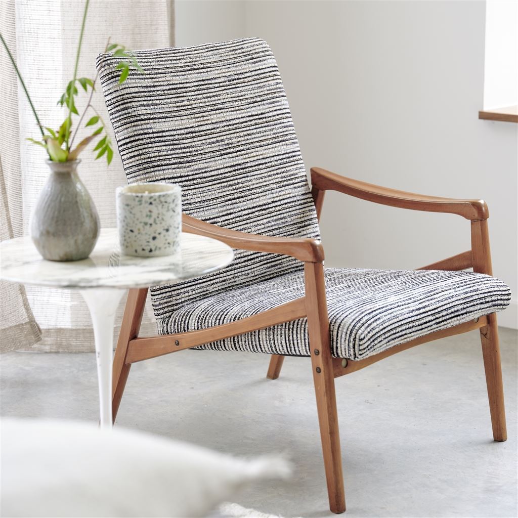 Ce tissage dynamique à rayures horizontales combine un fil chenille teint dans l'espace avec un fil bouclé torsadé et un fond en coton recyclé. Disponible en six coloris polyvalents pour l'ameublement contemporain. (Fabric - Largeur: 142cm, Raccord Horizontal: 0cm, Raccord Vertical: 0cm190.00 par mètre)