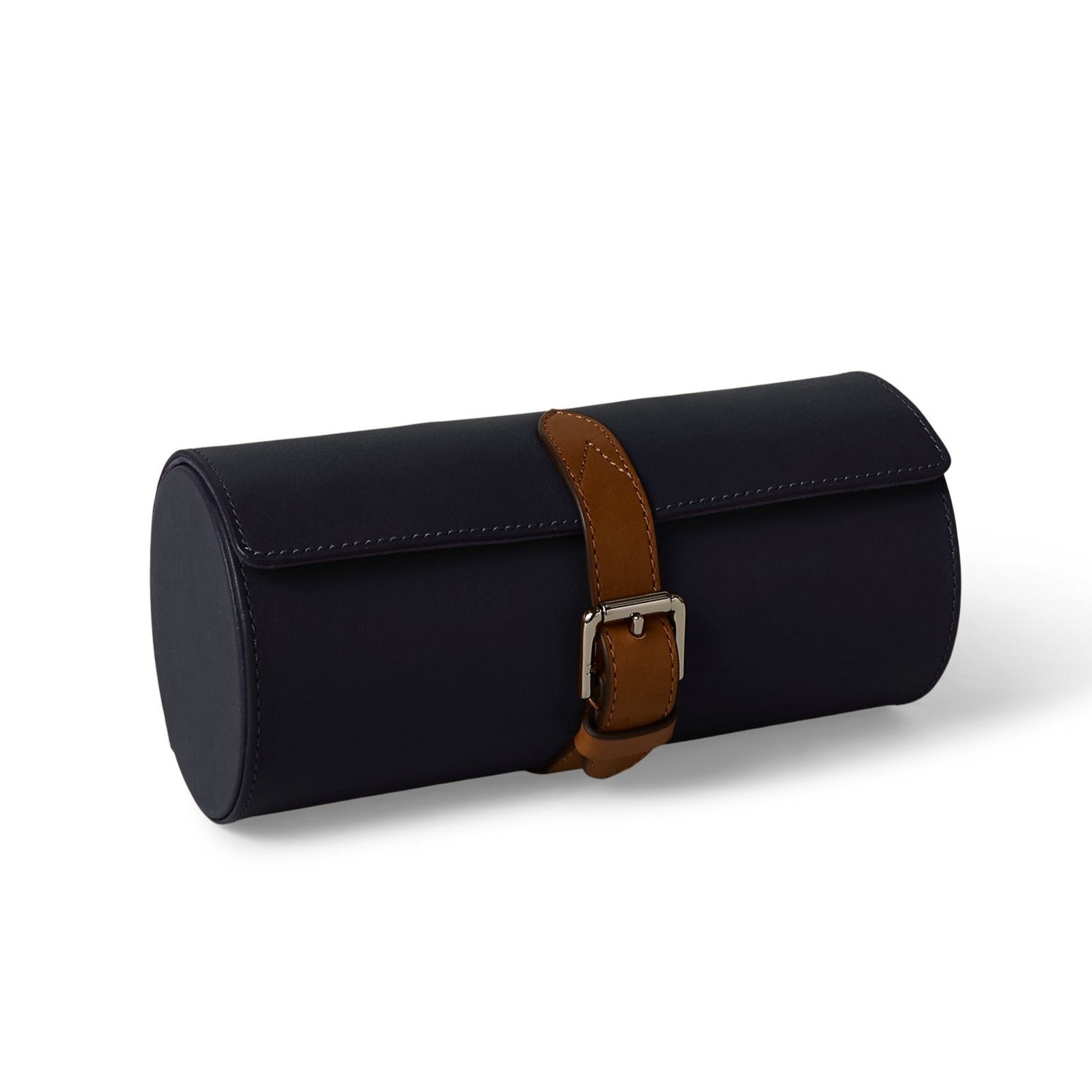 Confectionné avec soin en cuir de vache naturel, cet élégant étui pour accessoires est conçu pour accueillir trois montres. La silhouette cylindrique est doublée de chèvre velours ultra-doux et arbore une fermeture à boucle.