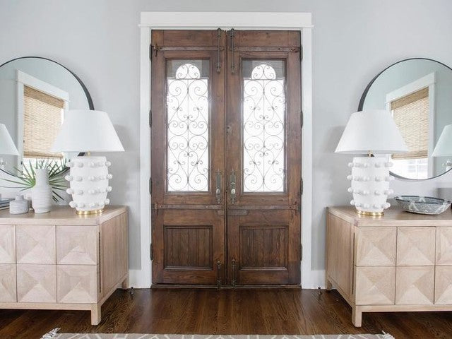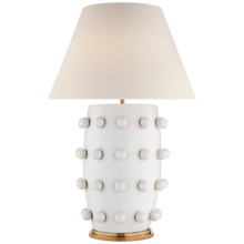 Avec ses sphères décoratives répétitives sur une base en céramique magnifiquement sculptée, la lampe de table Linden est un contraste ludique à la fois amusant et sophistiqué. Cette lampe de table est dotée d'un abat-jour en lin, de détails en laiton bruni et d'une finition en céramique noire ou en plâtre blanc.