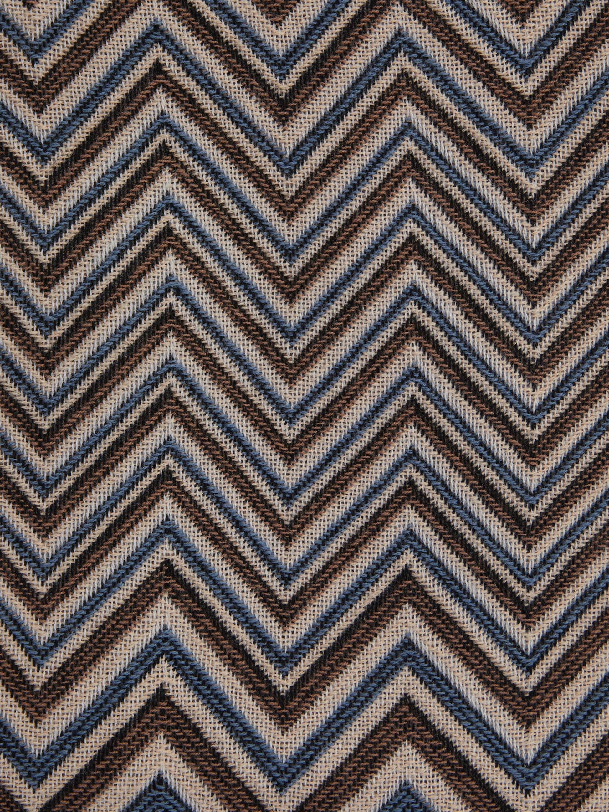 Proposé dans une boîte raffinée avec logo, qui en fait également un cadeau idéal, le plaid Antwan de 140x200 cm est l’expression la plus reconnaissable de l’ADN Missoni appliqué aux accessoires de la chambre à coucher. Proposé en laine mélangée avec un motif en zigzag, cet accessoire est fini avec des bords frangés.