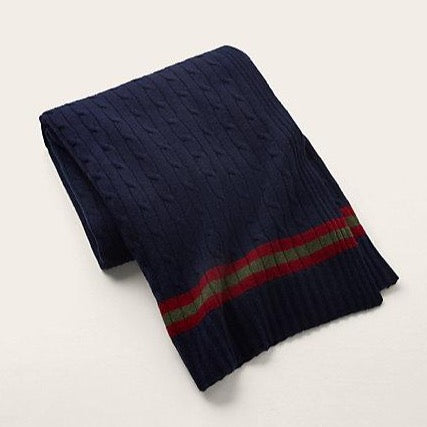 Plaid Cable Cricket en cachemire Navy/Bordeaux