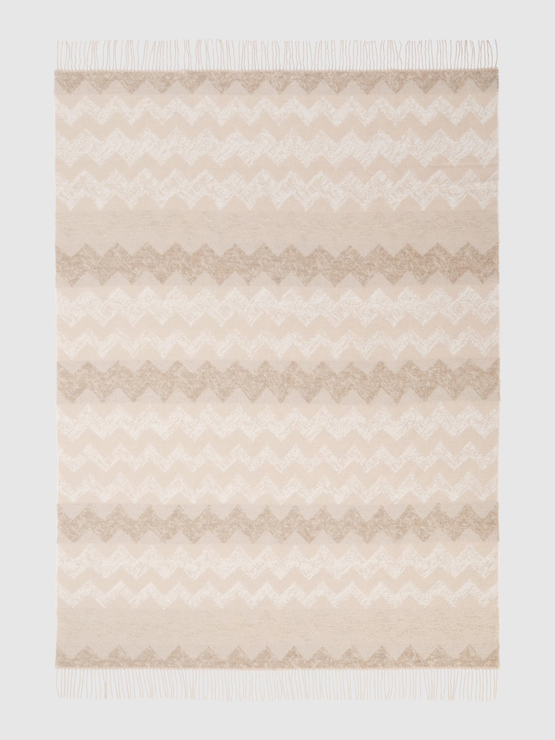 Le plaid Gessetti de Missoni, aux dimensions de 130x190 cm, célèbre le motif iconique en zigzag avec un effet rappelant les traits vifs des craies colorées. Confectionné en doux mélange de laine, il allie chaleur et sophistication, tandis que les franges décoratives apportent une dynamique supplémentaire au design. Parfait pour s’envelopper dans l’élégance et la couleur, il donne du caractère à tout espace.